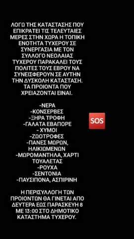 - Συλλογή ειδών πρώτης ανάγκης για τους πυρόπληκτους από τον Δήμο Σουφλίου