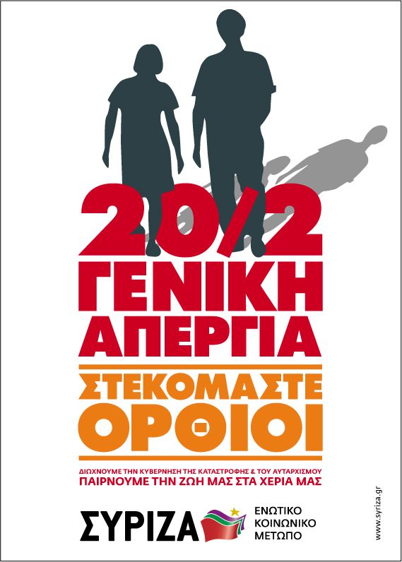 Αντεπίθεση για να απαλλαγούμε από τα μνημόνια, για να σταματήσουμε τη φορομπηχτική πολιτική, για να επιβάλλουμε τη διαγραφή του μεγαλύτερου μέρους του χρέους, για να εθνικοποιήσουμε-κοινωνικοποιήσουμε το τραπεζικό σύστημα προς όφελος του ελληνικού λαού και της κοινωνικά δίκαιης ανάπτυξης.