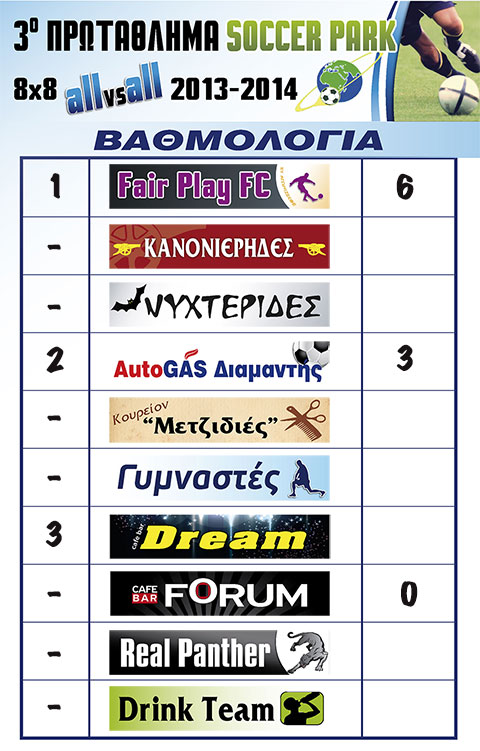 Ανασκόπησης της 2ης Αγωνιστικής του 3ου Πρωταθλήματος SOCCER PARK 8×8 allVSall