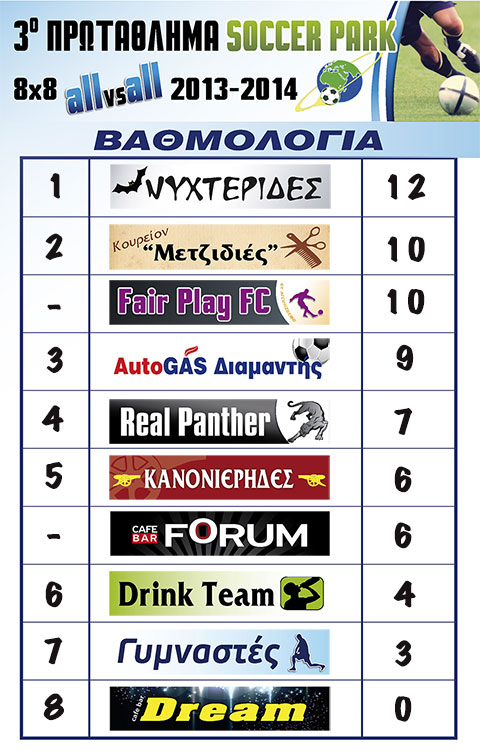 Ανασκόπηση της 5ης Αγωνιστικής του 3ου Πρωταθλήματος SOCCER PARK 8×8 allVSall