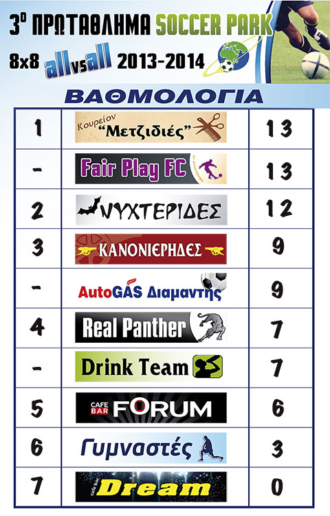 Ανασκόπηση της 6ης Αγωνιστικής του 3ου Πρωταθλήματος SOCCER PARK 8×8 allVSall
