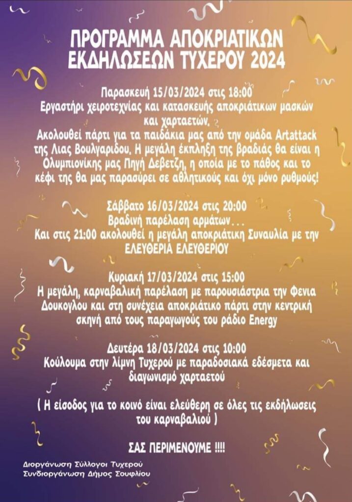 • Πρόγραμμα αποκριάτικων εκδηλώσεων στο Τυχερό.