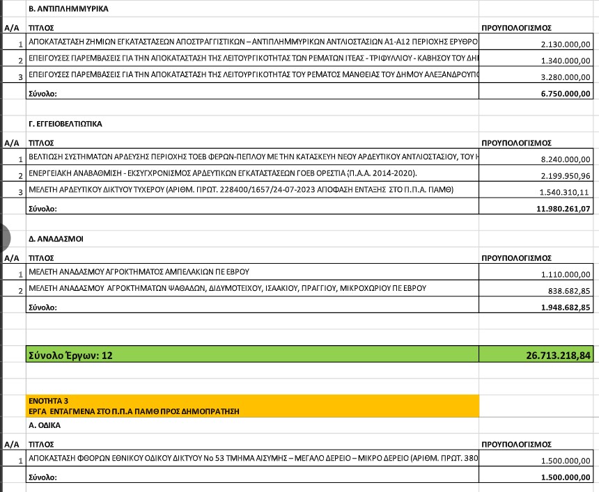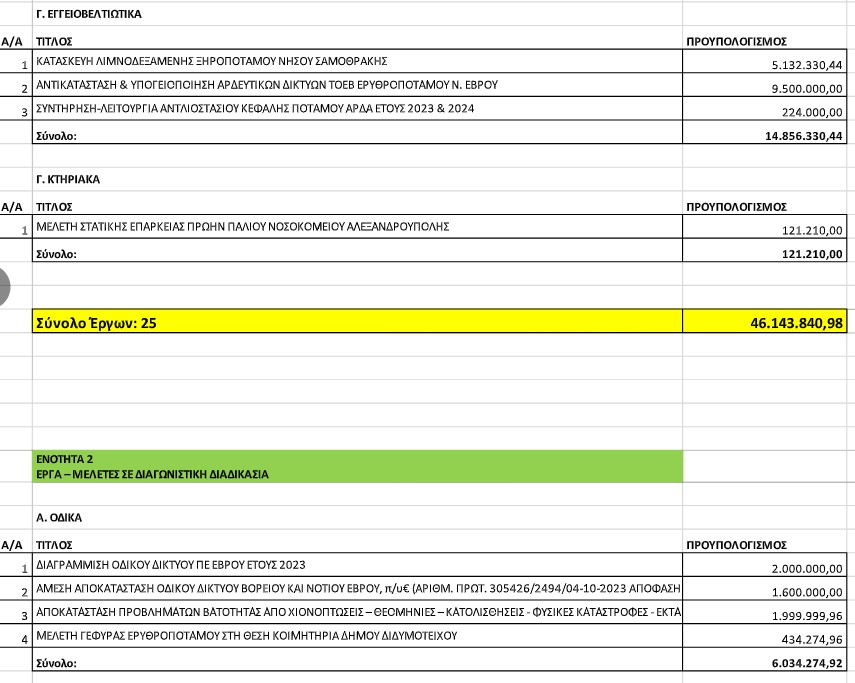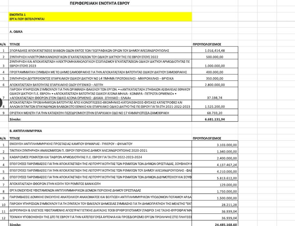 Αναλυτικά τα έργα για τον Έβρο: