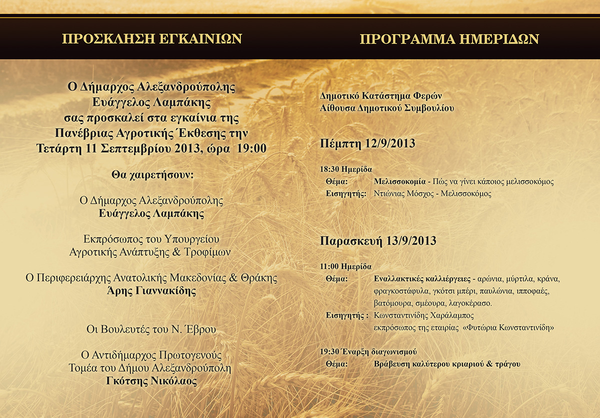 Από τις 11 έως τις 14 Σεπτεβρίου η Πανέβρια αγροτική έκθεση Φερών