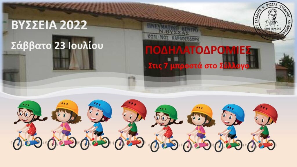 Ο Πολιτιστικός Σύλλογος Νέας Βύσσας Στέφανος Καραθεοδωρής σας προσκαλεί στις εκδηλώσεις μας ΒΥΣΣΕΙΑ 2022 που θα πραγματοποιηθούν από το Σάββατο 23 Ιουλίου 2022 εώς την Δευτέρα 25 Ιουλίου 2022.