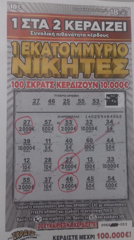 Σίγουρα μιλάμε για ένα γύρισμα της τύχης που θα είχε λήξει πολύ άδοξα όμως σε αυτήν την περίπτωση δεν ήταν μόνο η επιμονή της τύχης αλλά κυρίως η παρατηρητικότητα και το φιλότιμο του ανθρώπου που όχι μόνο είδε το τυχερό ξυστό και κατάλαβε το λάθος αλλά φρόντισε και να επιστρέψει στον δικαιούχο του!
