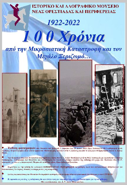 Το Ιστορικό και Λαογραφικό Μουσείο Νέας Ορεστιάδας και Περιφέρειας ανακοινώνει πως µε αφορµή την συµπλήρωση εκατό χρόνων από την Μικρασιατική Καταστροφή και τον Μεγάλο Ξεριζωµό, θα φιλοξενήσει στους εκθεσιακούς του χώρους σχετική έκθεση φωτογραφιών.
