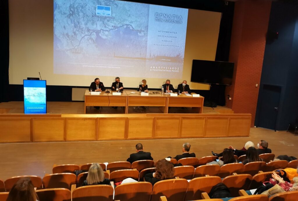 Ο σημαντικός ρόλος των τεσσάρων λιμανιών της Βόρειας Ελλάδας, Ηγουμενίτσας, Θεσσαλονίκης, Καβάλας και Αλεξανδρούπολης ως αναπτυξιακών κόμβων, η σύνδεσή τους μέσω της Εγνατίας οδού και η γεωστρατηγική σημασία τους αποτέλεσαν το θέμα ημερίδας που πραγματοποιήθηκε στο Λιμάνι της Θεσσαλονίκης.