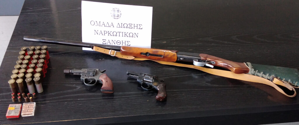 Κατασχέθηκαν, μεταξύ άλλων, 330,4 γραμμάρια ακατέργαστης κάνναβης, 2 γραμμάρια κοκαΐνης, 5 δενδρύλλια κάνναβης, 1 μαχαίρι, 1 σιδερογροθιά, 1 πτυσσόμενο γκλοπ, 1 κυνηγετικό όπλο, 2 περίστροφα, 6 ηλεκτρονικές ζυγαριές ακριβείας, κινητά τηλέφωνα, χρηματικό ποσό, 6 οχήματα και 2 μοτοσικλέτες