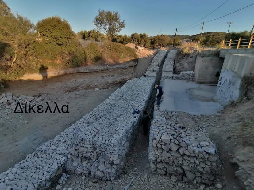 εξωτερικά του αγωγού ,συρματοκιβώτια με πέτρα,  εμποτισμός με τσιμέντο