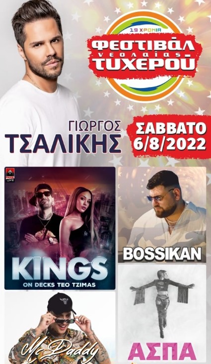 Το Σάββατο 6 Αυγούστου παίρνουν σκυτάλη τα πιο νεανικά σχήματα παρέα με τον Γιώργο Τσαλίκη, η προσθήκη του οποίου προκάλεσε την πιο ευχάριστη έκπληξη και ολοκλήρωσε το απόλυτο πάρτι του καλοκαιριού. Ο άνθρωπος συνώνυμο της θετικής ενέργειας, της διασκέδασης, που συνδέσαμε στιγμές της ζωής μας συναισθηματικά με κορυφαίες μπαλάντες του.
