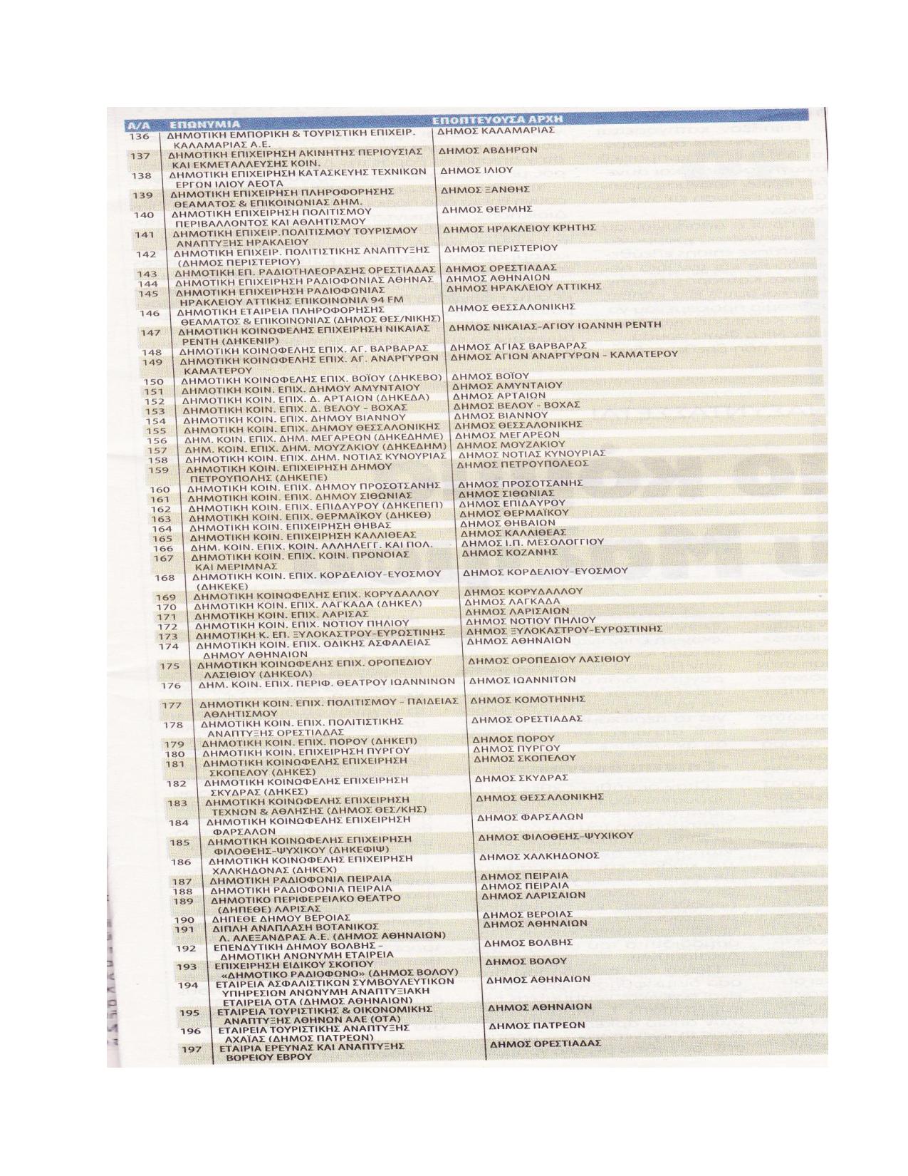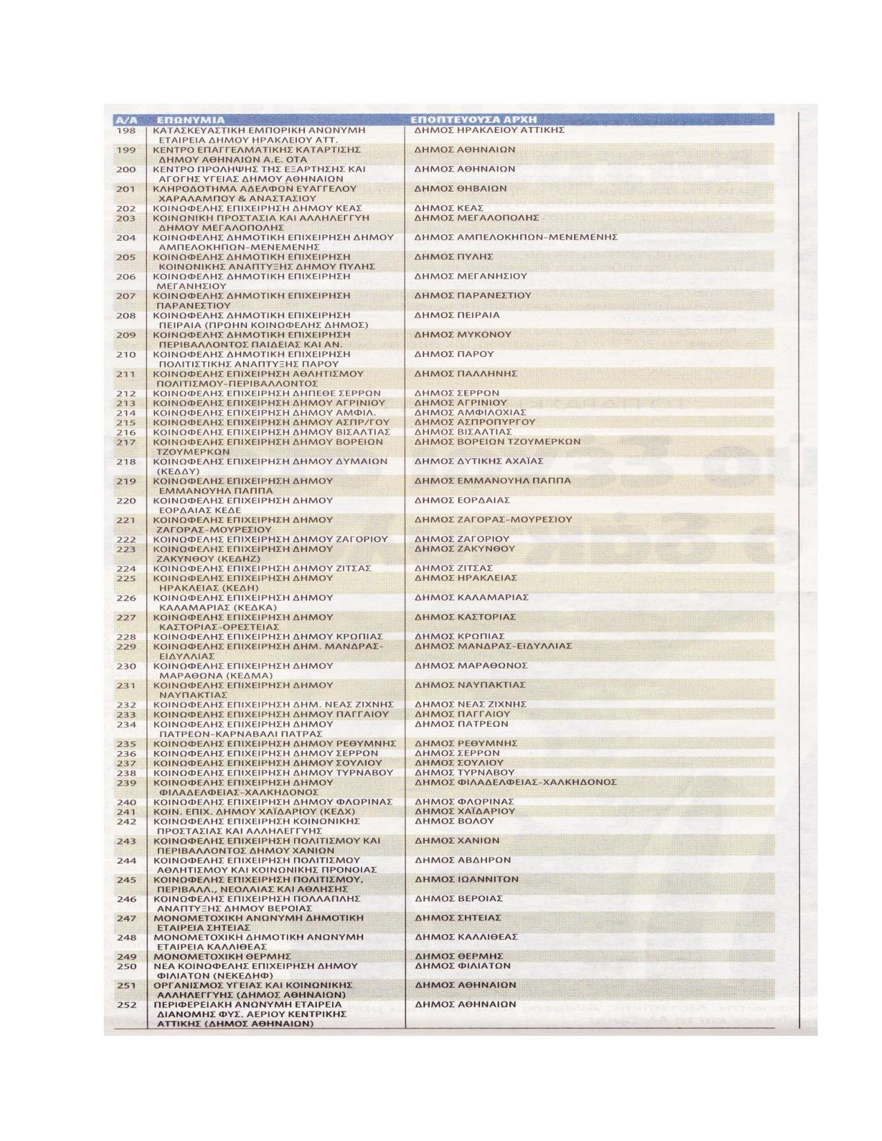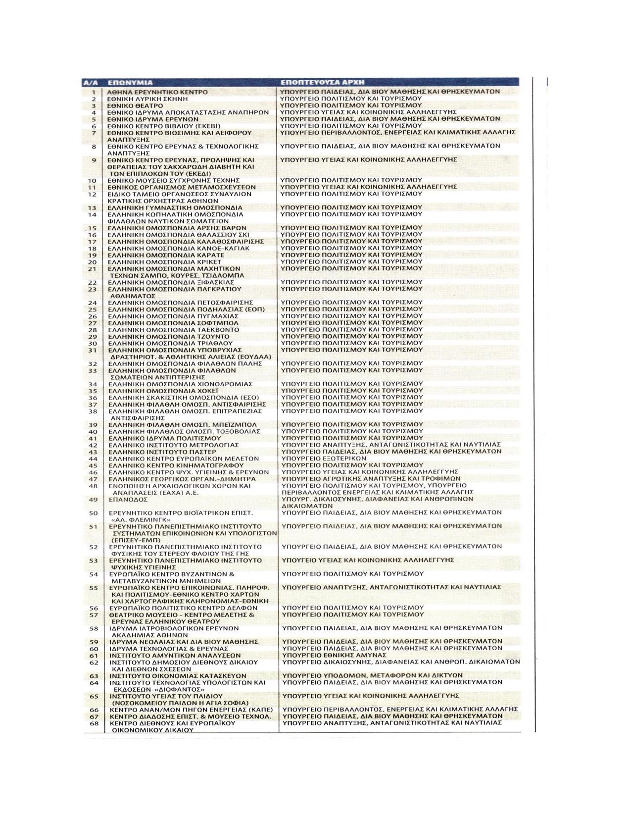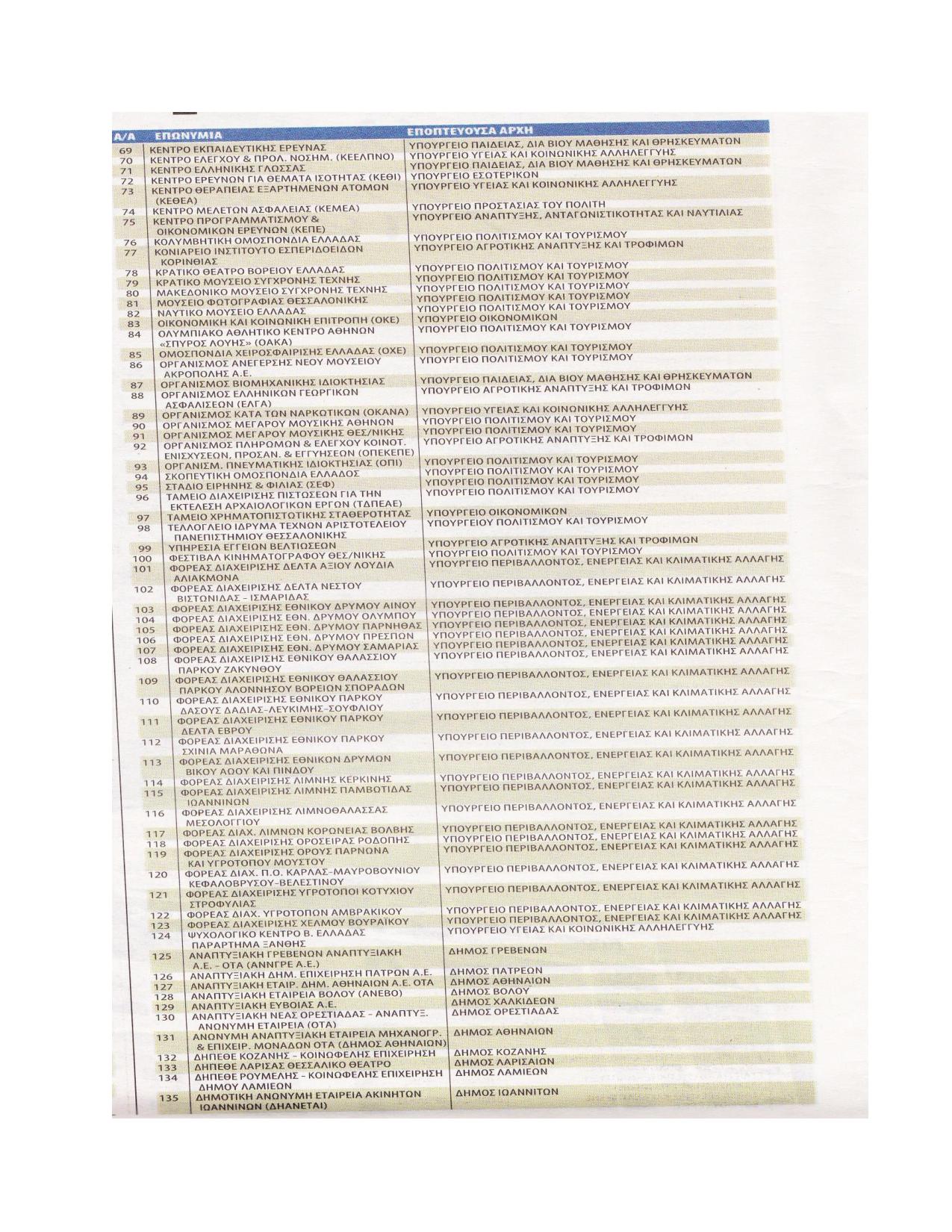 Κατάλογο με 252 Νομικά Πρόσωπα Ιδιωτικού Δικαίου (ΝΠΙΔ) που θα βρεθούν στο στόχαστρο καταργήσεων ή συγχωνεύσεων και θα αποτελέσουν την πρώτη «δεξαμενή» για τις 15.000 απολύσεις υπαλλήλων, εκ των οποίων οι 4.000 εντός του έτους και οι 2000 εξ αυτών άμεσα έχει καταρτίσει η κυβέρνηση.