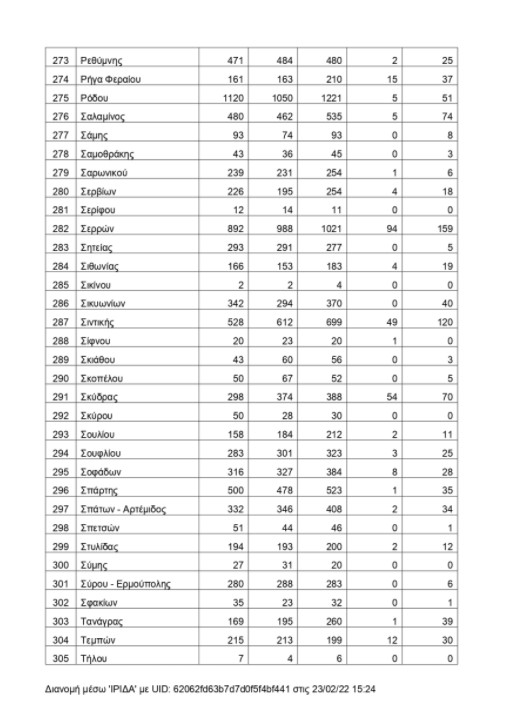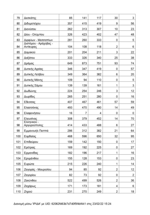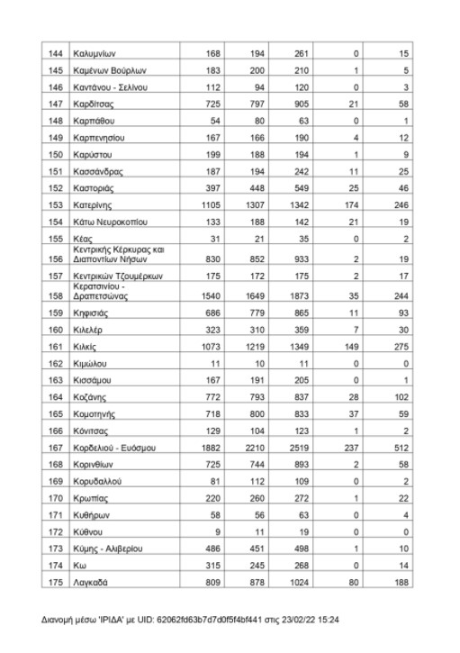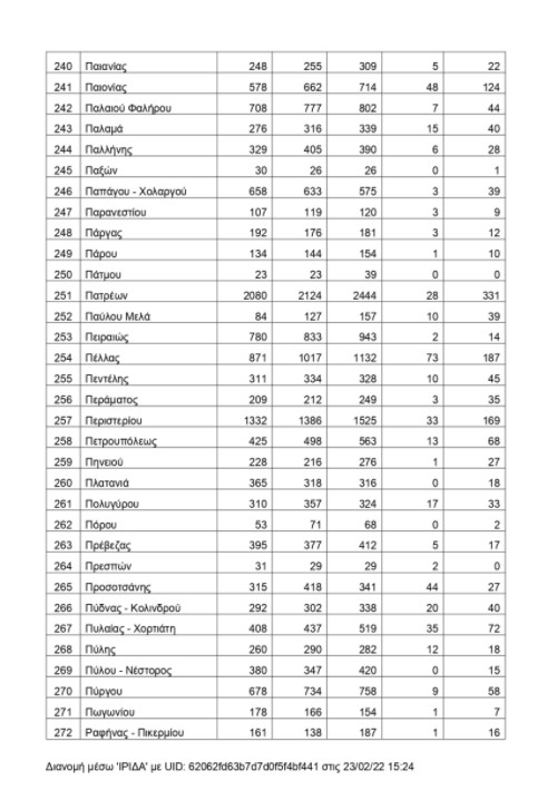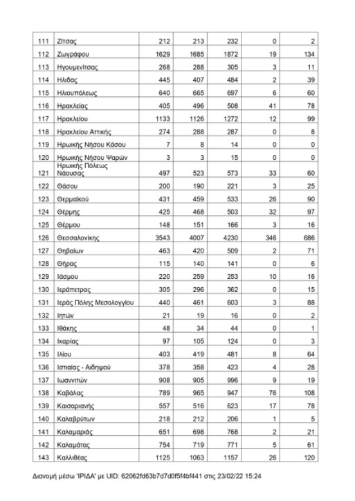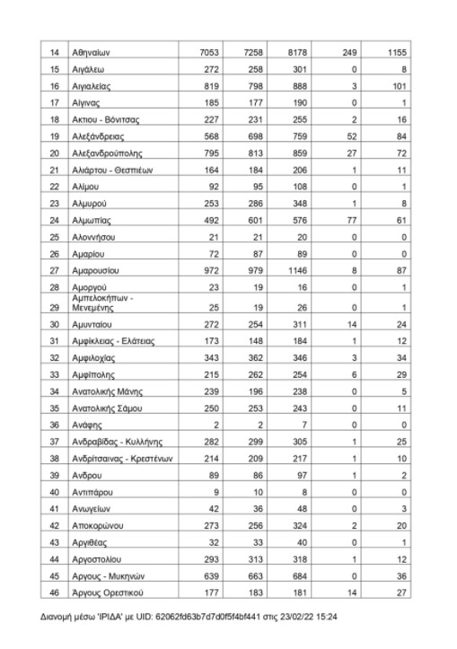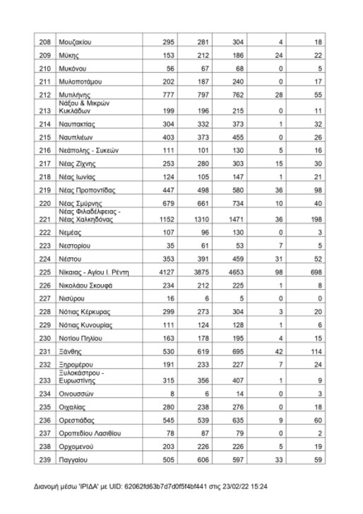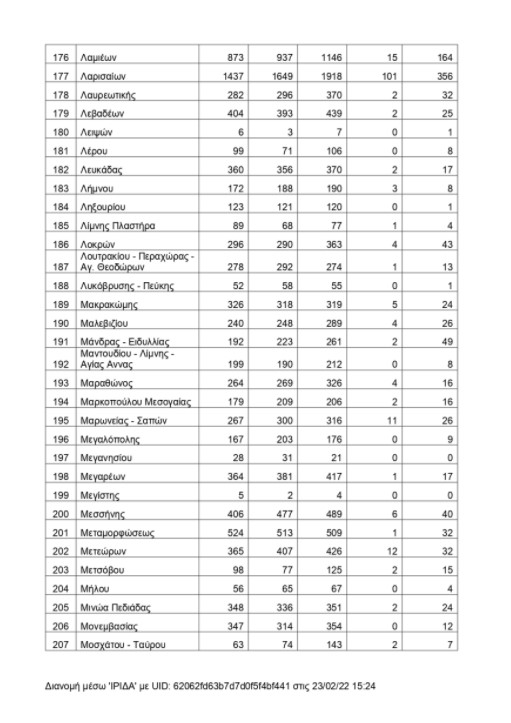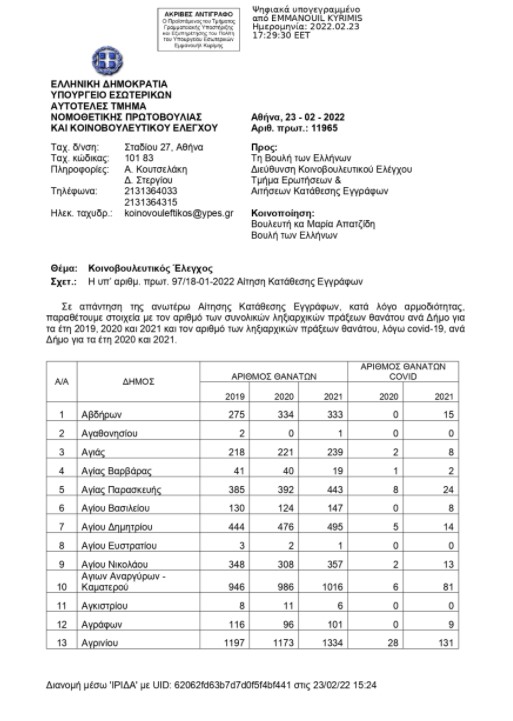 Αναλυτικά στοιχεία με τον αριθμό των συνολικών ληξιαρχικών πράξεων θανάτου ανά Δήμο για τα έτη 2019, 2020 και 2021 και τον αριθμό των ληξιαρχικών πράξεων θανάτου, λόγω covid-19, ανά για τα έτη 2020 και 2021 διαβίβασε το Υπουργείο Εσωτερικών στη Βουλή.
