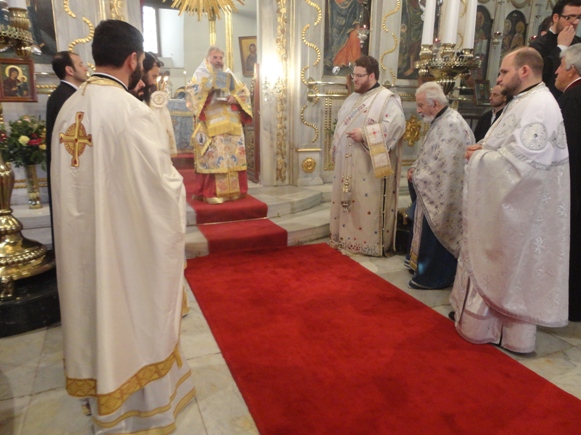 Το Σεβασμιώτατο συνόδευαν οι εκ των κληρικών της Μητροπόλεως μας Αρχιμ. Νικόδημος Σκλέπας, ο Αρχιδιάκονος Ανδρέας Αϊντινίδης και ο Διάκονος Γαβριήλ Χειμώνας.