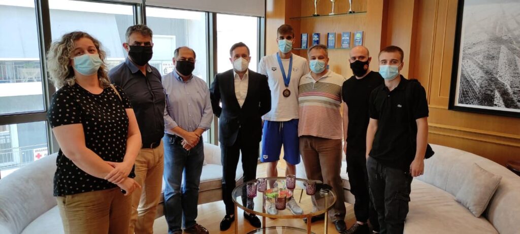 Τον αθλητή του Ν.Ο.Α. Τάσο Κούγκουλο που κατέκτησε το χάλκινο μετάλλιο στα 50 μ. ύπτιο του Ευρωπαϊκού πρωταθλήματος εφήβων – νεανίδων στη Ρώμη, υποδέχτηκε στο γραφείο του ο Δήμαρχος Αλεξανδρούπολης Γιάννης Ζαμπούκης.