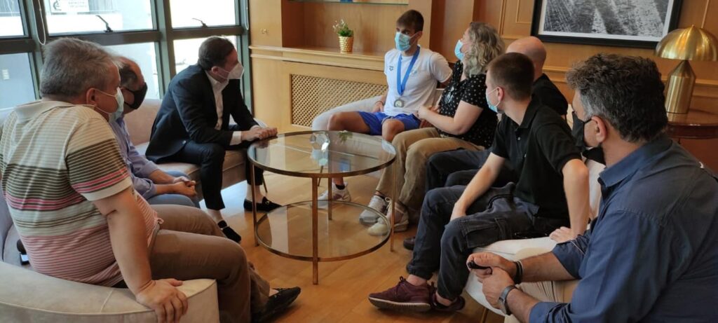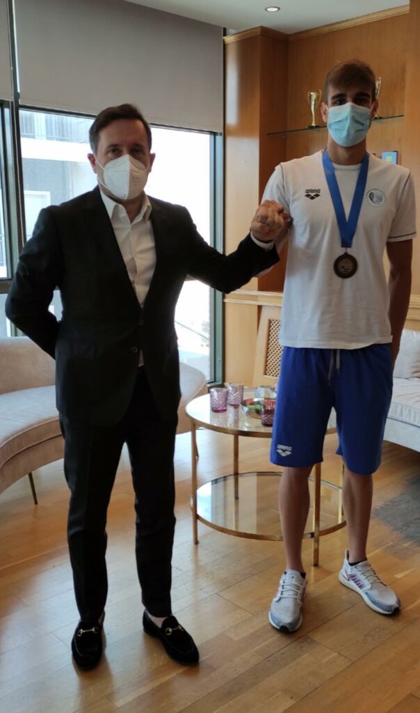 Ο δήμαρχος συνεχάρη τον νεαρό αθλητή όχι μόνο για τις επιδόσεις του και τις επιτυχίες του αλλά και για τον τρόπο που διαχειρίστηκε τον χρόνο προετοιμασίας του, καθώς κατά τη διάρκεια της καραντίνας ήταν αφοσιωμένος τόσο στην καθημερινή του προπόνηση στο Δημοτικό Κολυμβητήριο Αλεξανδρούπολης αλλά και στην προετοιμασία του για τις πανελλήνιες εξετάσεις πετυχαίνοντας μάλιστα την εισαγωγή του σε σχολή προτίμησής του.
