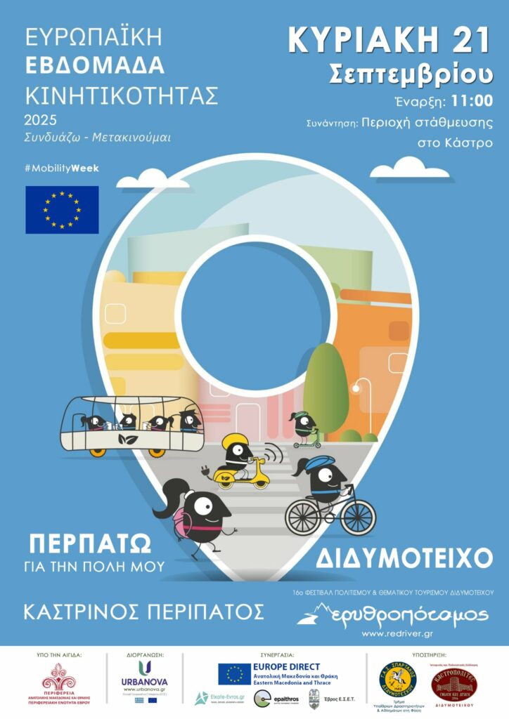 Στο πλαίσιο της Ευρωπαϊκής Εβδομάδας Κινητικότητας 2025 και της δράσης “Περπατώ για την πόλη μου” το Διδυμότειχο συμμετέχει με έναν καστρινό περίπατο