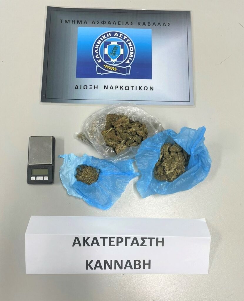 Στη δεύτερη περίπτωση, στην Καβάλα οι παραπάνω αστυνομικοί συνέλαβαν έναν ημεδαπό δράστη, διότι κατείχε στην οικία του τρεις νάιλον συσκευασίες με ακατέργαστη κάνναβη, συνολικού βάρους 44,4 γραμμαρίων και μία ηλεκτρονική ζυγαριά ακριβείας.