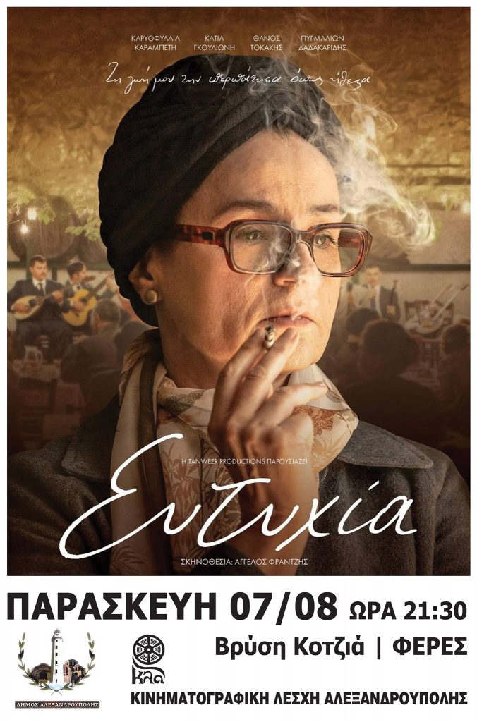 Μια ξεχωριστή κινηματογραφική εμπειρία θα έχουν την ευκαιρία να βιώσουν όσοι βρεθούν στις Φέρες, στο υπαίθριο θέατρο Κοτζιά, την Παρασκευή 7 Αυγούστου και ώρα 21:30, καθώς θα πραγματοποιηθεί ανοιχτή προβολή της ταινίας “Ευτυχία”, από την Κινηματογραφική Λέσχη Αλεξανδρούπολης σε συνεργασία με τον Δήμος Αλεξανδρούπολης.