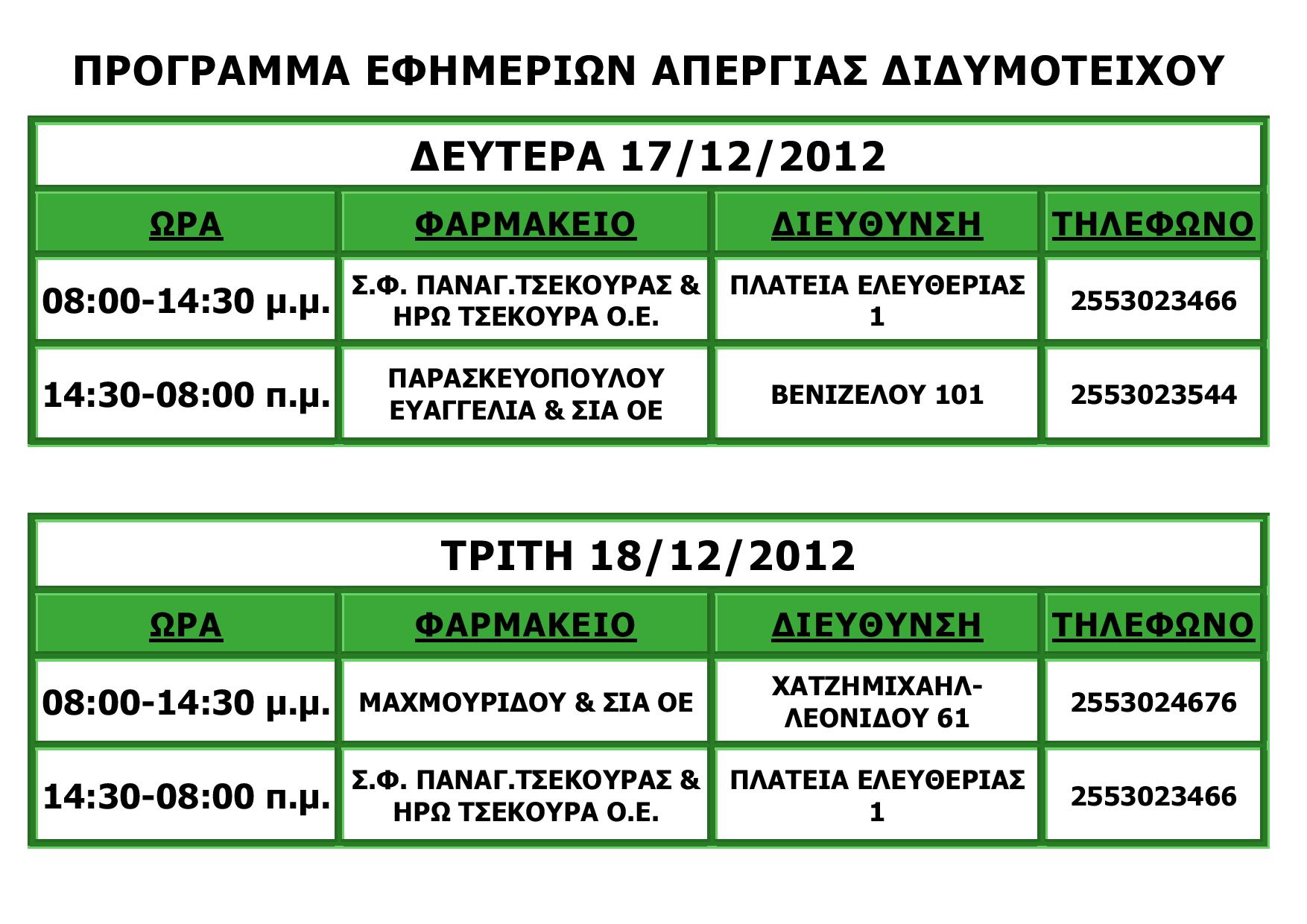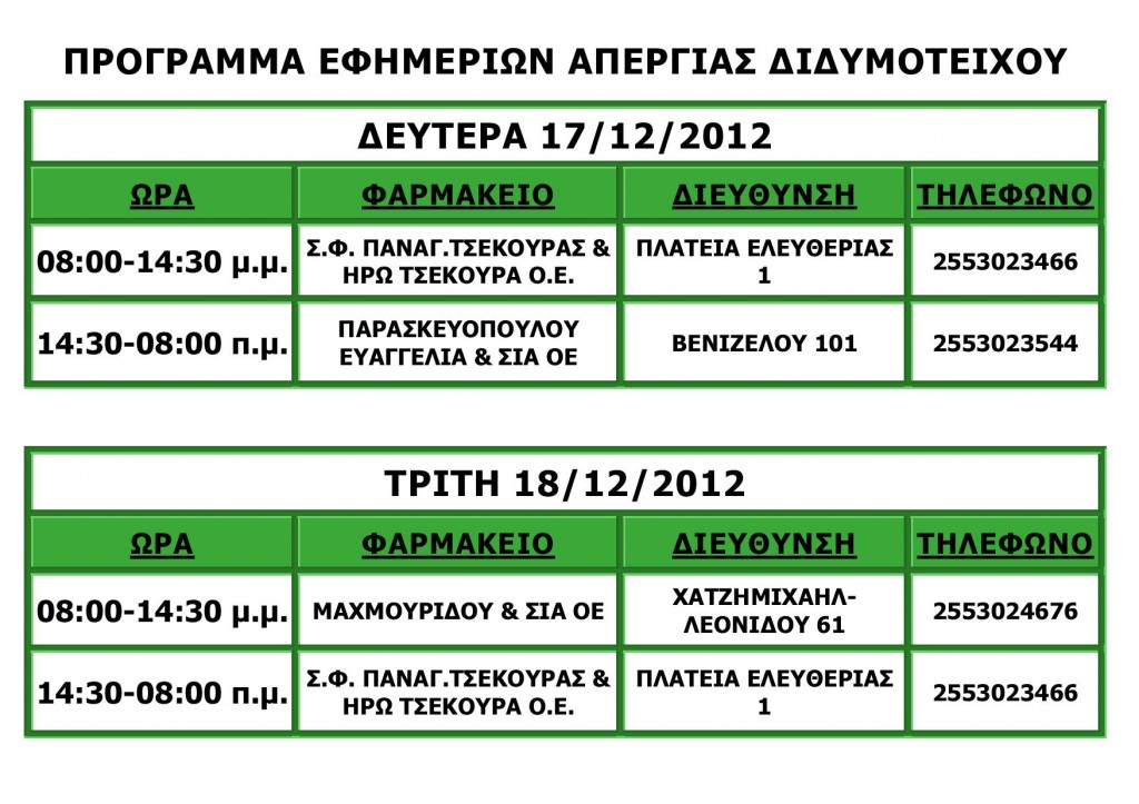Πρόγραμμα Εφημεριών Φαρμακείων Ορεστιάδας και Διδυμοτείχου για 17 και 18 Δεκεμβρίου λόγω Απεργίας
