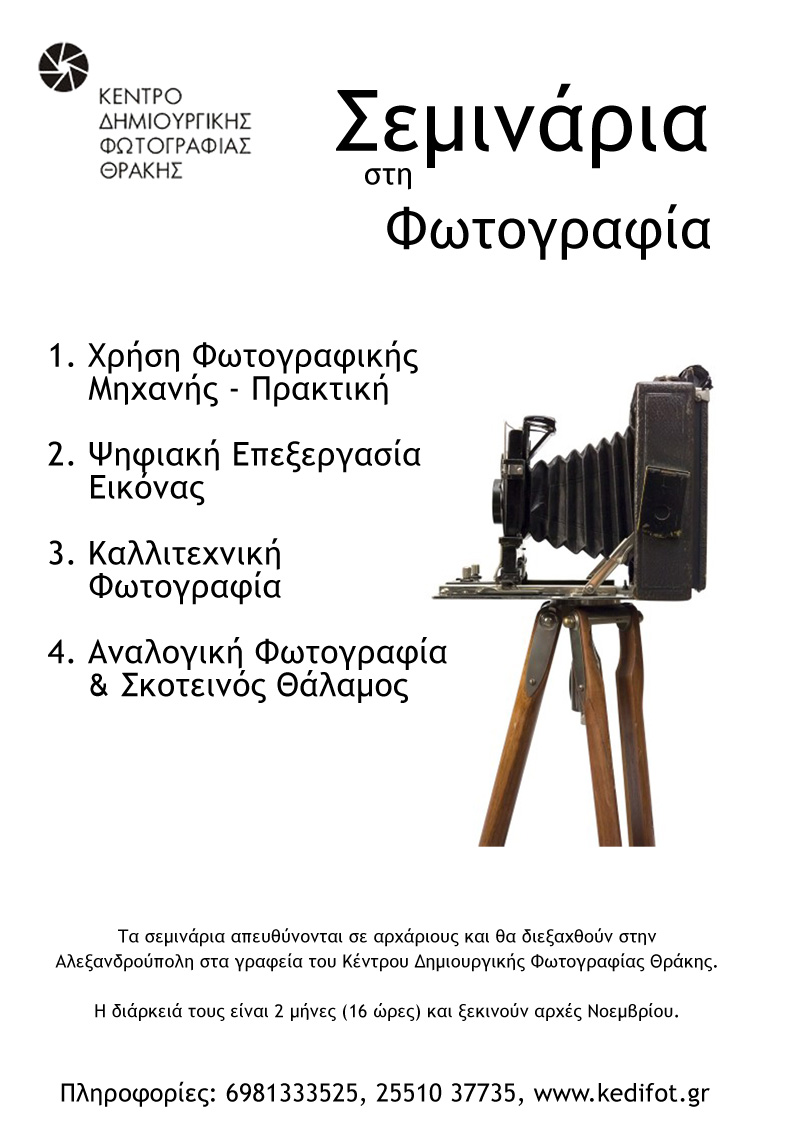 Το Κέντρο Δημιουργικής Φωτογραφίας Θράκης διοργανώνει 4 σεμινάρια φωτογραφίας με θέματα: