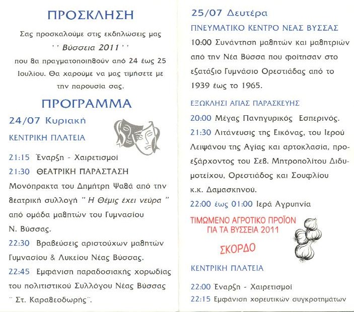 Στις 24 και 25 Ιουλίου τα Βύσσεια 2011
