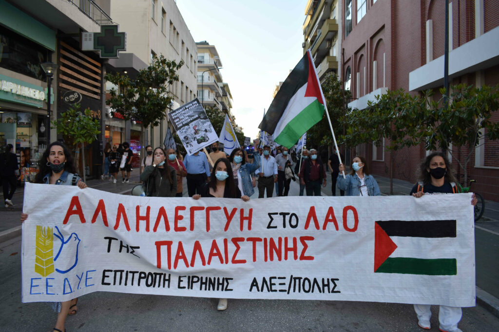 Δεκάδες πολίτες και εκπρόσωποι σωματείων, καθώς και μέλη της παλαιστινιακής κοινότητας, συμμετείχαν δυναμικά ανταποκρινόμενοι στο κάλεσμα της Επιτροπής Ειρήνης, καταγγέλλοντας τη συνεχιζόμενη ισραηλινή κατοχή, τους ανηλεείς βομβαρδισμούς με θύματα εκατοντάδες παλαιστινίους ανάμεσα τους και παιδιά, εκφράζοντας την αλληλεγγύη τους στο δίκαιο αγώνα των Παλαιστινίων.