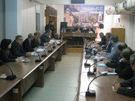 Ακολούθησε ευρεία σύσκεψη στην οποία συμμετείχαν ο κ. Θύμιος Σώκος, η κ. Γεωργία Νικολάου και υπηρεσιακοί παράγοντες της Περιφερειακής Ενότητας Έβρου και της Αποκεντρωμένης Διοίκησης Μακεδονίας-Θράκης. Εξετάσθηκαν θέματα που αφορούν το ΕΣΠΑ, τη διαχείριση των απορριμμάτων και των υδάτινων πόρων, την ύδρευση, την άρδευση, τους οδικούς άξονες, τα λιμενικά έργα, γενικότερες υποδομές, διαδικαστικά θέματα που προκύπτουν στο μεταβατικό στάδιο από τη Νομαρχιακή στην Περιφερειακή Αυτοδιοίκηση κα.
