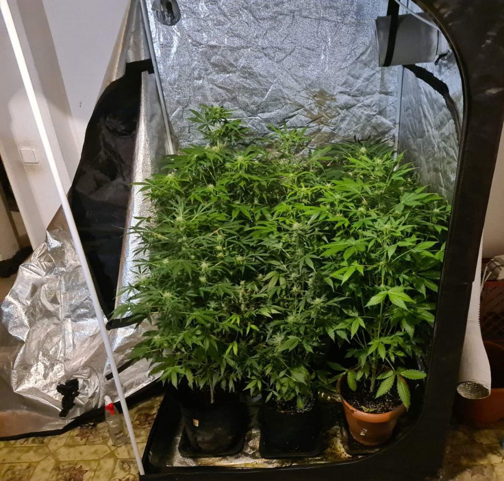 Σε έρευνες που πραγματοποιήθηκαν σε οικίες των δραστών στη Θάσο, βρέθηκαν δύο ολοκληρωμένα συστήματα για την καλλιέργεια φυτών σε εσωτερικό χώρο αποτελούμενα από λαμπτήρες, ανακλαστήρες, ανεμιστήρες, μετασχηματιστές κ.α., εντός των οποίων καλλιεργούνταν 16 φυτά κάνναβης, ύψους από 0,5 έως 1,7 μέτρων, καθώς και 3 συσκευασίες με ακατέργαστη κάνναβη, συνολικού βάρους 21 γραμμαρίων.