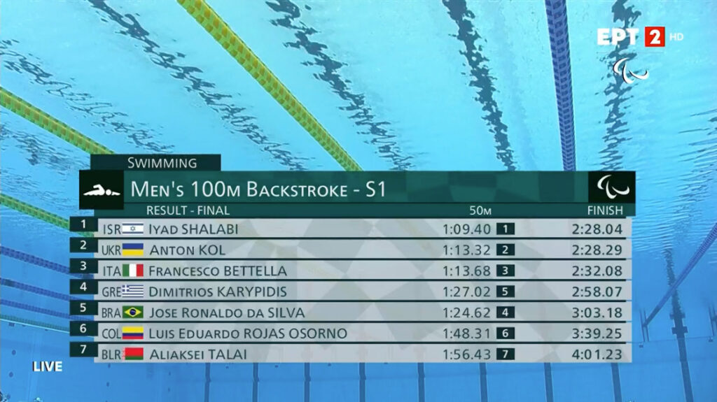 Ο αγώνας έλαβε μέρος σήμερα Τετάρτη 25 Αυγούστου στις 11:20 το πρωί (ώρα Ελλάδος) και ο Εβρίτης Δημήτρης Καρυπίδης κατέκτησε την τέταρτη θέση στα 100 μέτρα ύπτιο S1 προσθέτοντας και αυτήν την διάκριση στην μέχρι τώρα πορεία του.
