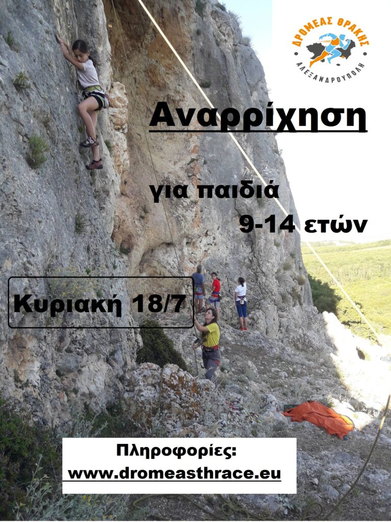 Την Κυριακή αναρρίχηση για παιδιά 9-14 ετών από τον ΔΡΟΜΕΑ ΘΡΑΚΗΣ