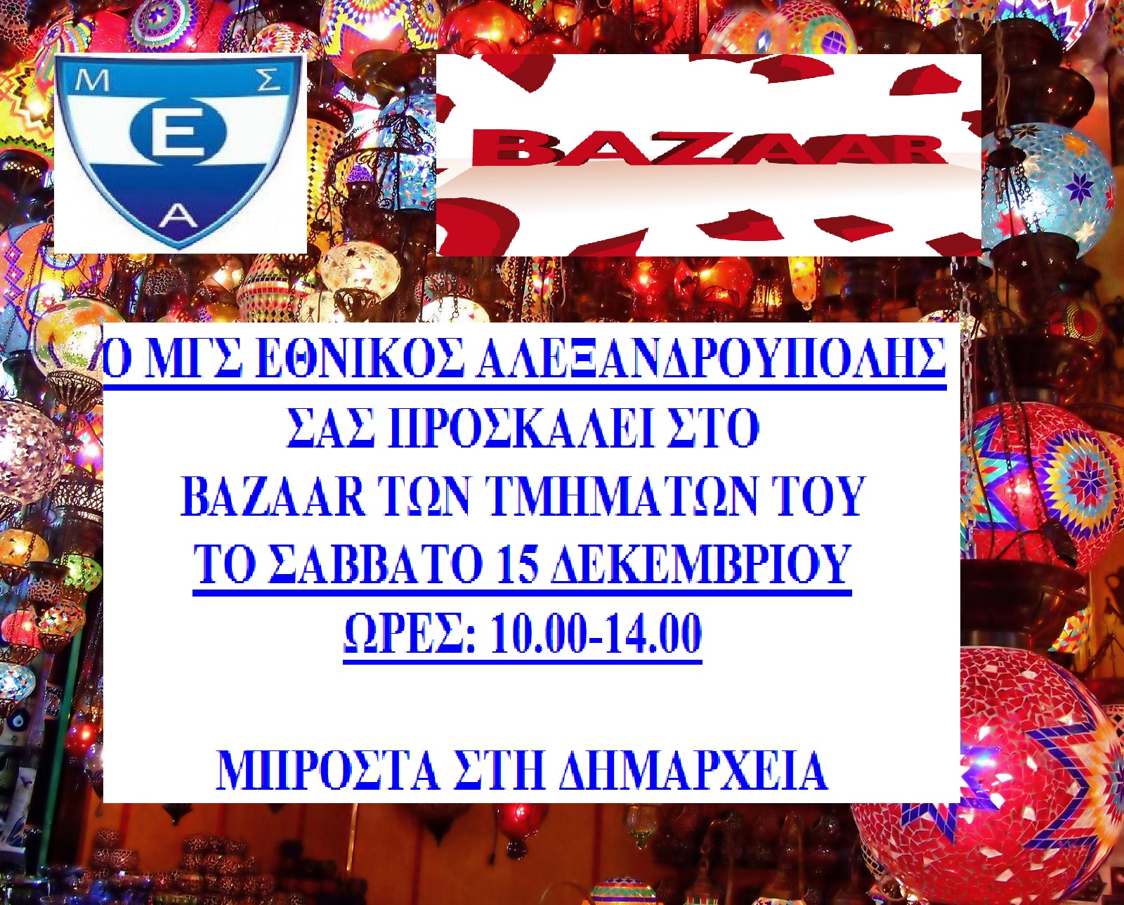Το Σάββατο 15 Δεκεμβρίου bazaar τμημάτων του Εθνικού ΜΓΣ Αλεξανδρούπολης