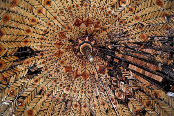 Στο εσωτερικό του τεμένους υπάρχει διακοσμητικός ξύλινος θόλος φτιαγμένος από μικρές σανίδες δρύινου ξύλου, του 14ου αιώνα. Πάνω από το ιερό (μιχράμπ) το οποίο βρίσκεται στο νότιο τείχος απεικονίζεται η ουράνια πόλη ενώ οι υπόλοιποι τοίχοι και κολώνες είναι διακοσμημένες με γνωμικά από το Κοράνι και παρακλητικά κείμενα στον Αλλάχ, σε καλλιγραφική μορφή.