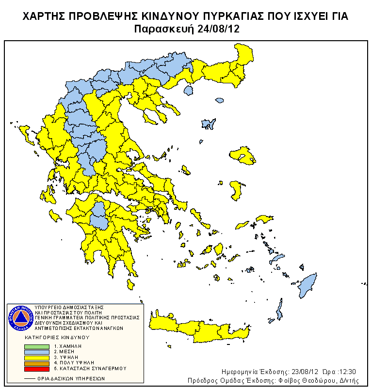 Λόγω του αυξημένου κινδύνου εκδήλωσης πυρκαγιάς αύριο Παρασκευή 24-08-2012 σε όλο το Νομό Έβρου πλήν της Νήσου Σαμοθράκης (Δείκτης επικινδυνότητας 3, υψηλός κίνδυνος), παρακαλούμε για την άμεση λήψη των παρακάτω προληπτικών μέτρων :
