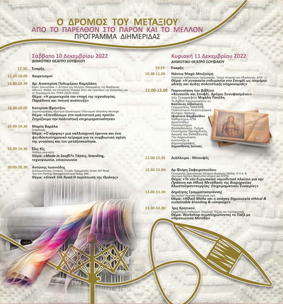Σάββατο 10 και Κυριακή 11 Δεκεμβρίου 2022 «Ο δρόμος του μεταξιού από το παρελθόν, στο παρόν και το μέλλον» με αξιόλογους ομιλητές.