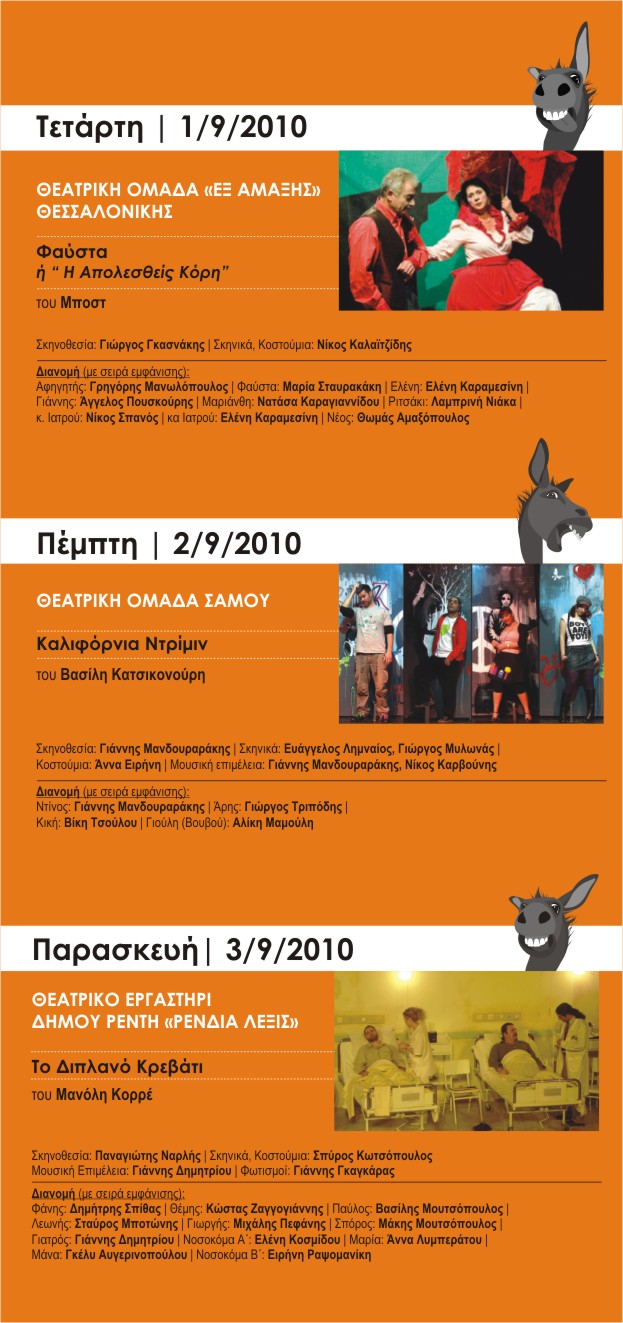 Το 11ο Πανελλήνιο Φεστιβάλ Ερασιτεχνικού Θεάτρου θα πραγματοποιηθεί από τις 29 Αυγούστου έως και τις 5 Σεπτεμβρίου στο Υπαίθριο Δημοτικό Θέατρο της πόλης, με τη συμμετοχή 8 θεατρικών ομάδων (6 διαγωνιζόμενες και 2 εκτός συναγωνισμού).