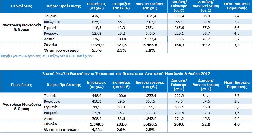 Μάλιστα η Περιφέρεια ΑΜΘ έχει αυξήσει το συνολικό ποσοστό επισκεπτών στην χώρα μας, από 4,3% σε 5,5%, παρόλο που συνεχίζει, όπως και τις προηγούμενες χρονιές να μην αποδίδει στις εισπράξεις σε σχέση με την υπόλοιπη χώρα, μιας και αυτές, παρότι αυξημένες σε σχέση με τις υπόλοιπες χρονιές στα 321,6 εκ. ευρώ, αποτελούν το 2,1%επί του συνόλου, ενώ οι διανυκτερεύσεις αυξήθηκαν και αυτές στις 6.466.600 αλλά παραμένουν στο 2,8%επί του συνόλου, όπως και τις προηγούμενες χρονιές.