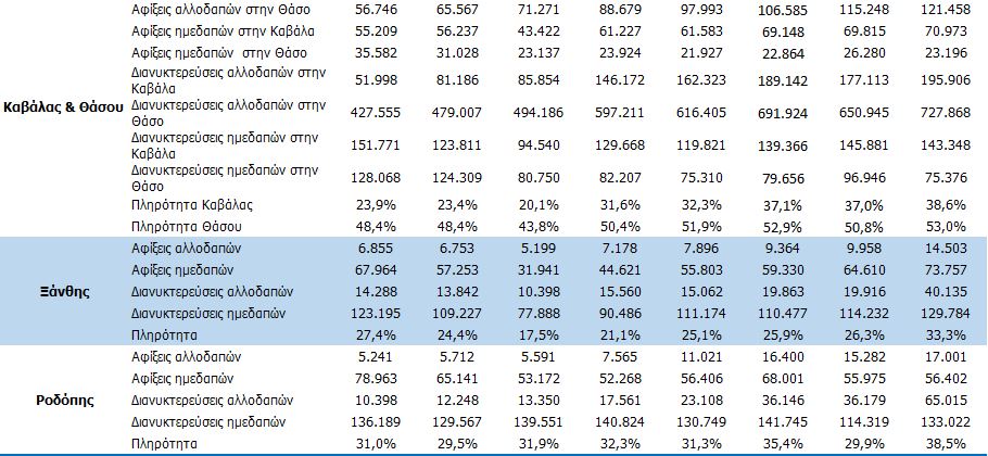 Πάντως βλέπουμε, από το 2014 ουσιαστικά και μετά, μια αύξηση στις αφίξεις αλλοδαπών στη Ροδόπη, αποτέλεσμα της λειτουργίας του κάθετου άξονα, ενώ σε απόλυτους αριθμούς οι διανυκτερεύσεις (αλλοδαπών και ημεδαπών) έχουν αυξηθεί σημαντικά.
