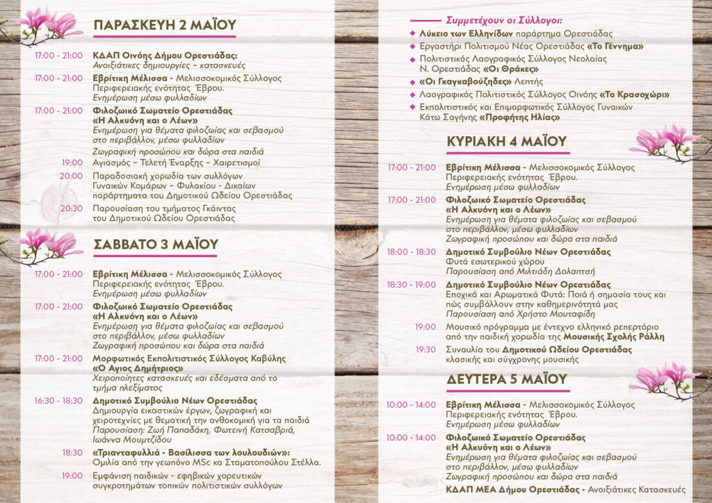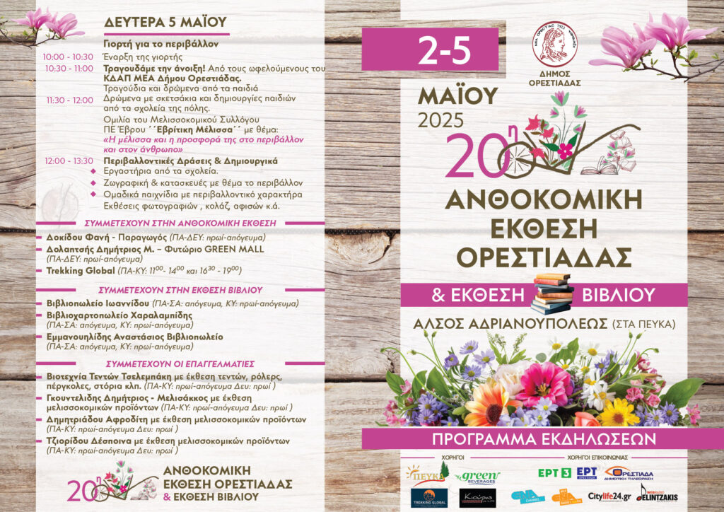20η Ανθοκομική Έκθεση και έκθεση βιβλίου Ορεστιάδας – Αναλυτικό πρόγραμμα