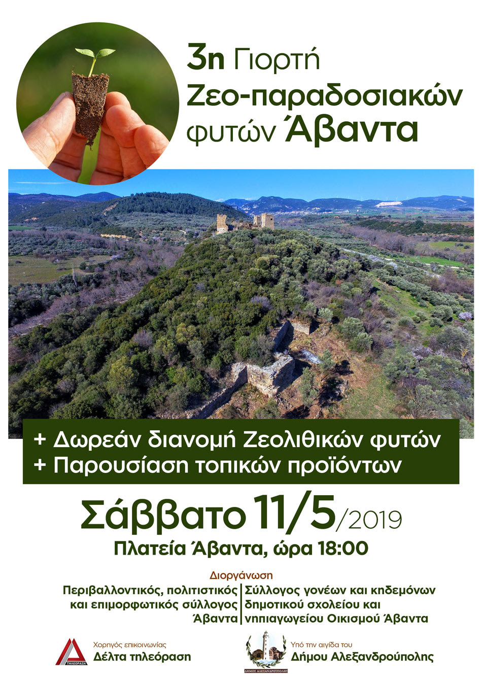 Για τρίτη συνεχόμενη χρονιά, ο πολιτιστικός σύλλογος Άβαντα Αλεξανδρούπολης, διοργανώνει, την καθιερωμένη πλέον, Γιορτή Ζεο-Παραδοσιακών φυτών Άβαντα.