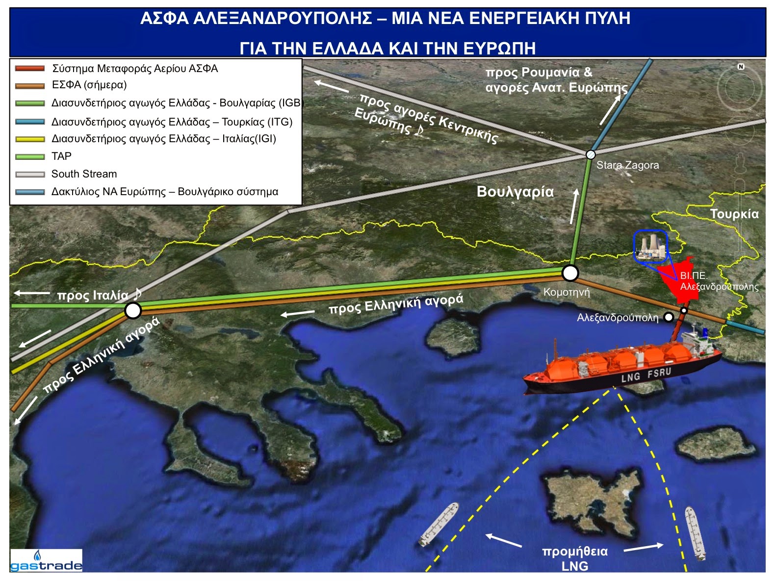 Το έργο ¨ΑΣΦΑ¨ Αλεξανδρούπολης αφορά στον υπεράκτιο πλωτό τερματικό σταθμό υποδοχής προσωρινής αποθήκευσης και αεριοποίησης Υγροποιημένου Φυσικού Αερίου (ΥΦΑ) στο Θρακικό Πέλαγος, νοτιοδυτικά του λιμένα της Αλεξανδρούπολης καθώς και σε αγωγό σύνδεσης αυτού με το σύστημα φυσικού αερίου, το Εθνικό Σύστημα Φυσικού Αερίου που λειτουργείται από τον ΔΕΣΦΑ. Μέσω του αγωγού αυτού, το φυσικό αέριο που αποθηκεύεται και αεριοποιείται στον πλωτό σταθμό θα μεταφέρεται στις αγορές της Ελλάδας και των Βαλκανικών χωρών προς κατανάλωση.