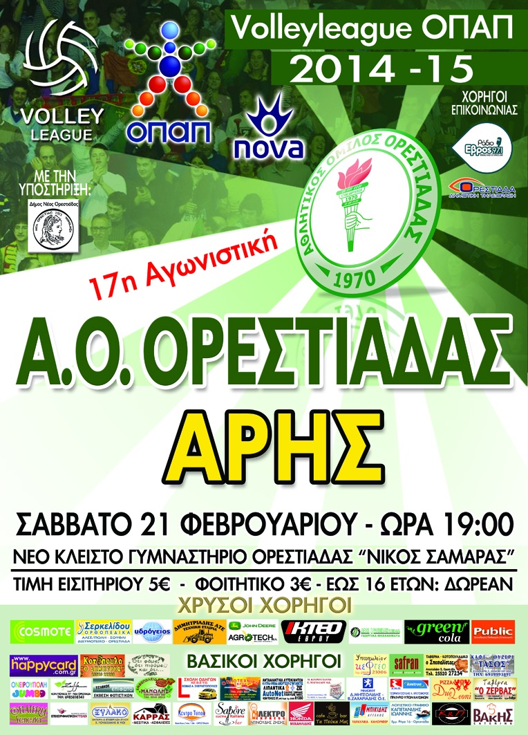 Volleyleague: Α.Ο. Ορεστιάδας – Άρης