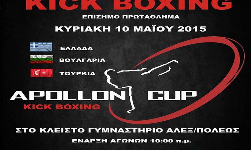 Ο Αθλητικός Σύλλογος Απόλλων Αλεξανδρούπολης διοργανώνει την Κυριακή τριεθνές τουρνουά κικ μπόξινγκ αλλά και διασυλλογικό πρωτάθλημα Βορείου Ελλάδος με τον τίτλο “APOLLON OPEN CUP 2015″.Οι Αγώνες θα διεξαχθούν την Κυριακή 10 Μαΐου 2015 από τις 09:00 το πρωί στο κλειστό γυμναστήριο Αλεξανδρουπόλεως και θα διεξαχθούν υπό την αιγίδα της Πανελλήνιας Ομοσπονδίας Kick Boxing.
