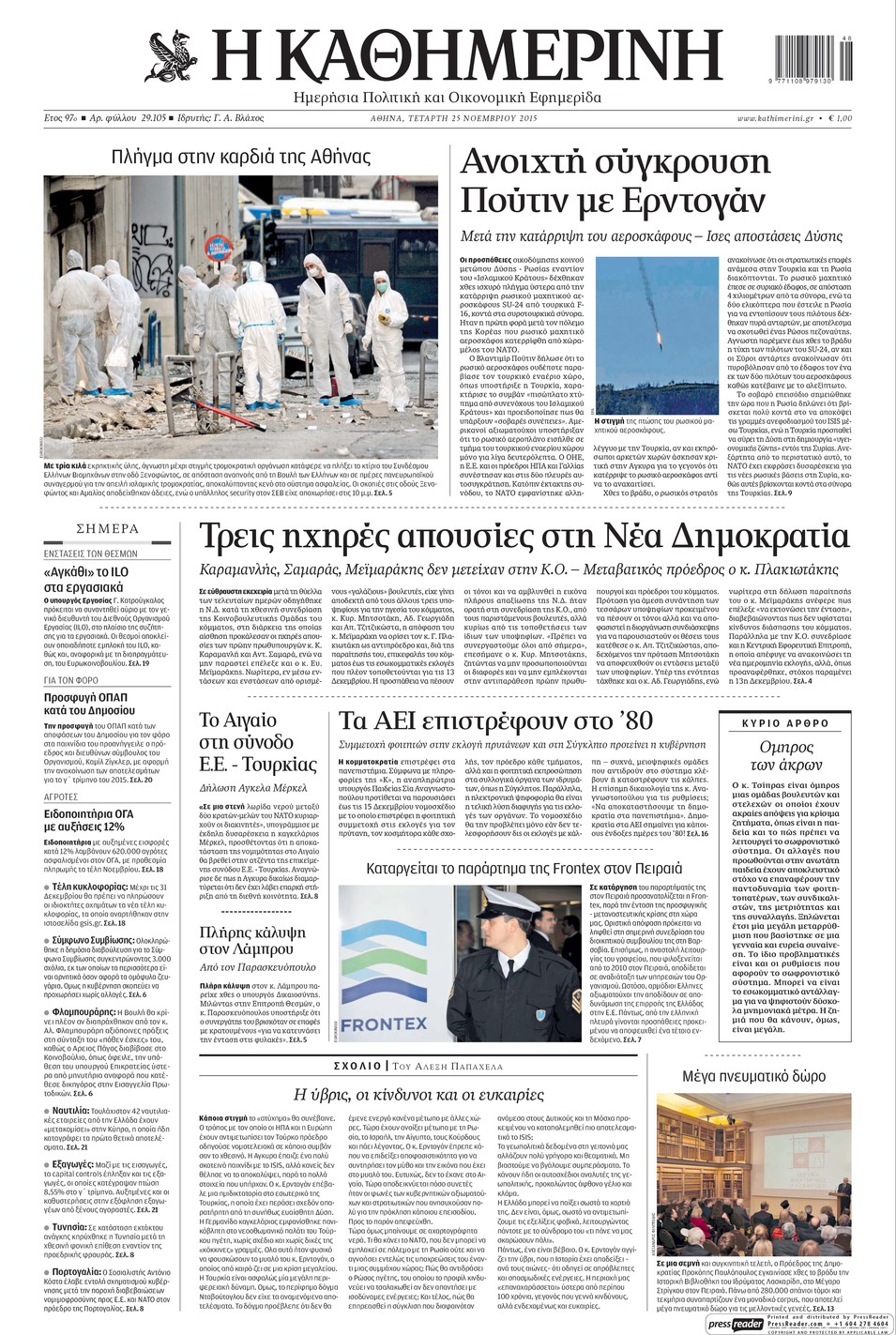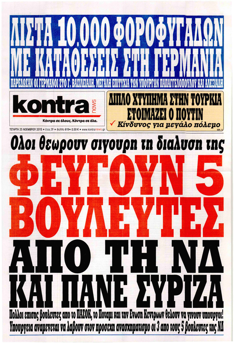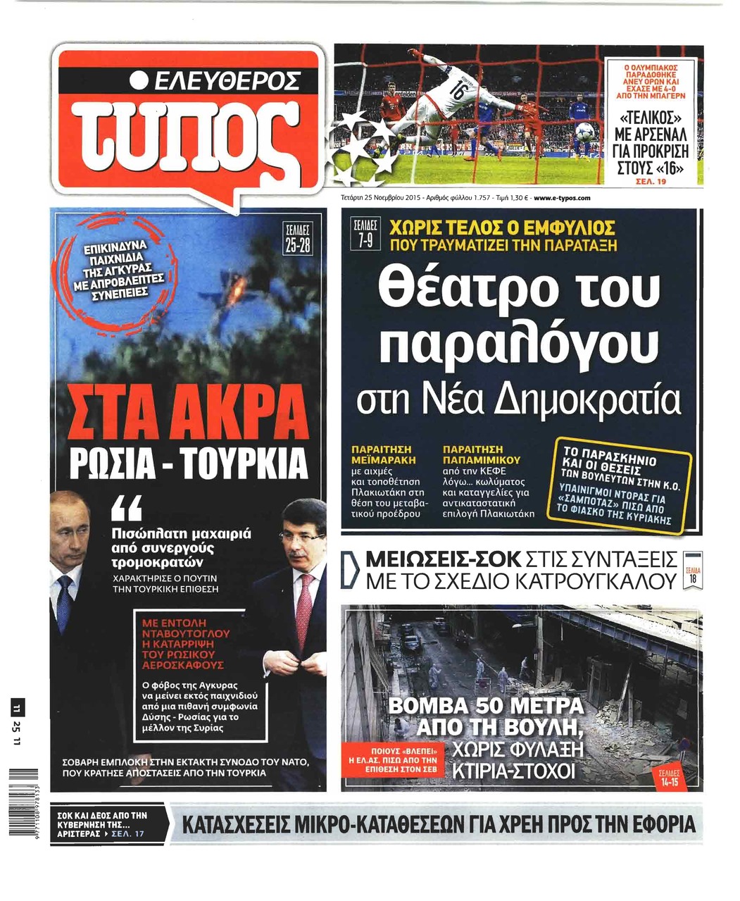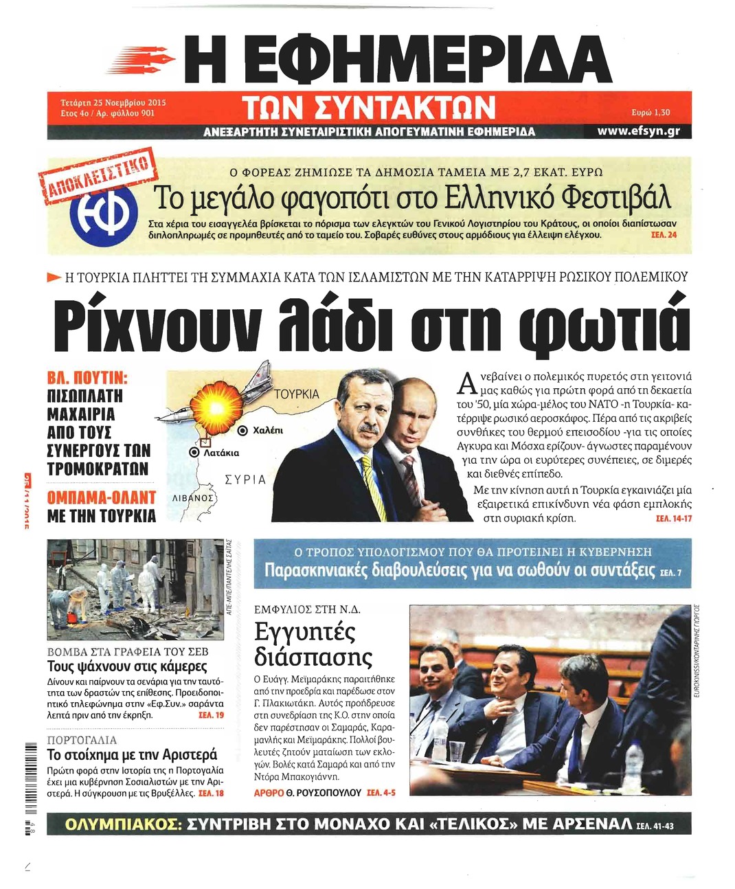 Πρωτοσέλιδα του ελληνικού Τύπου 25/11/2015