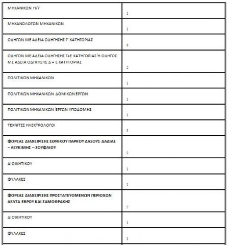 - και 2 στον Φορέα Διαχείρισης Προστατευόμενων Περιοχών Δέλτα Έβρου και Σαμοθράκης.