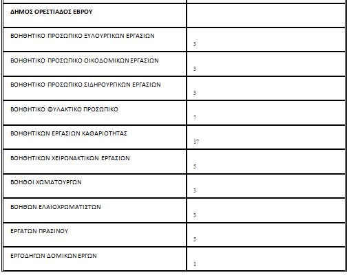 Σύμφωνα με την κατανομή για τον νομό Έβρου προβλέπονται συνολικά 70 θέσεις διαφόρων ειδικοτήτων σε τρεις φορείς: