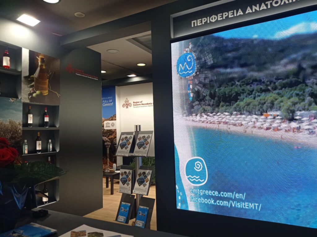 Με επίκεντρο τις φυσικές ομορφιές της Ανατολικής Μακεδονίας και Θράκης και τα τοπικά προϊόντα που ξεχωρίζουν, το περίπτερο ελκύει τον επισκέπτη σε μια πρώτη γνωριμία με τον τόπο και τους ανθρώπους του που θα τον δελεάσει για μια επίσκεψη και περιήγηση στις ομορφιές της βορειότερης περιφέρειας της χώρας. Μέσω των εκθεμάτων, των παρουσιάσεων και των διαδραστικών ενεργειών, το κοινό ενημερώνεται για τις δυνατότητες και τις ευκαιρίες που προσφέρει η περιοχή, ενισχύοντας την εξωστρέφεια και την ανάπτυξη της. Οι τομείς που προβάλλονται είναι ο τουρισμός, με έμφαση στα νέα εργαλεία και τις ενέργειες προώθησης και προβολής, η θέση της Περιφέρειας ως ενεργειακός κόμβος μέσω των μεγάλων έργων ενέργειας που υλοποιούνται, η διαχείριση των χρηματοδοτικών εργαλείων της και οι δείκτες απορρόφησης των κεφαλαίων και τέλος ο τομέας της αγροδιατροφής. Με την καθοριστική συμμετοχή και συνδρομή των επιχειρήσεων της Περιφέρειας, παρουσιάζονται τοπικά προϊόντα από όλες τις Περιφερειακές Ενότητες, όπως είναι το ελαιόλαδο, τα γαλακτοκομικά και αλλαντικά, το κρασί, ζυμαρικά, ταχίνι και ρεβίθια.