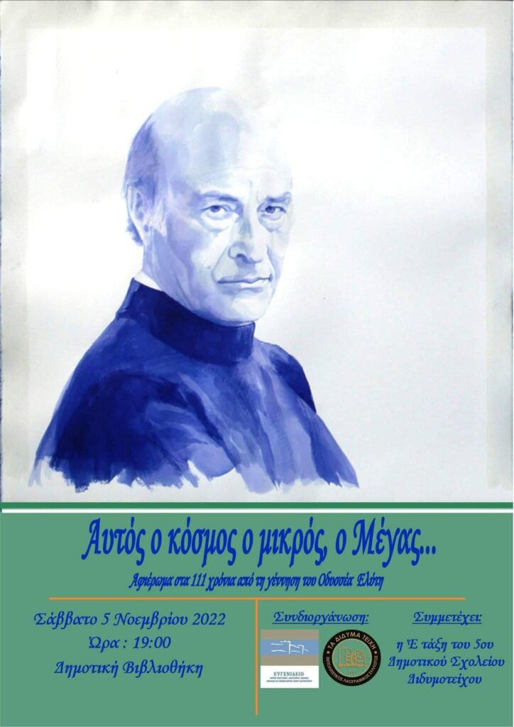 «Αυτός ο κόσμος ο μικρός, ο Μέγας… »: Εκδήλωση-αφιέρωμα στον Οδ. Ελύτη στη Δημοτική Βιβλιοθήκη Διδυμοτείχου
