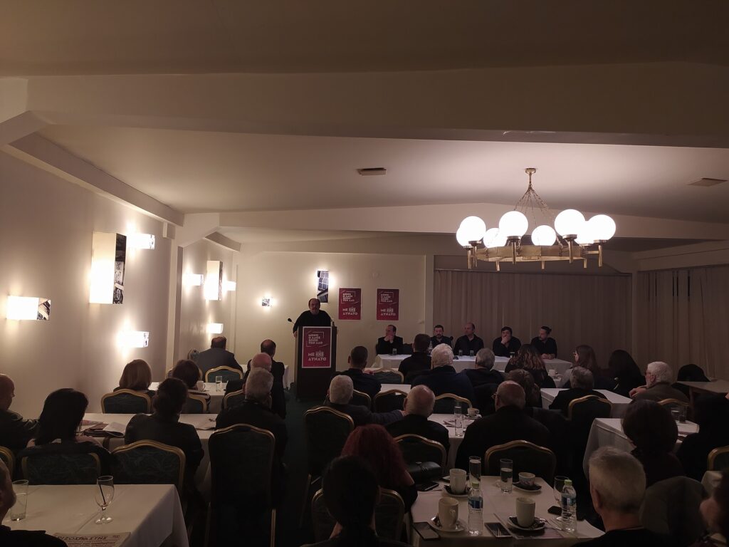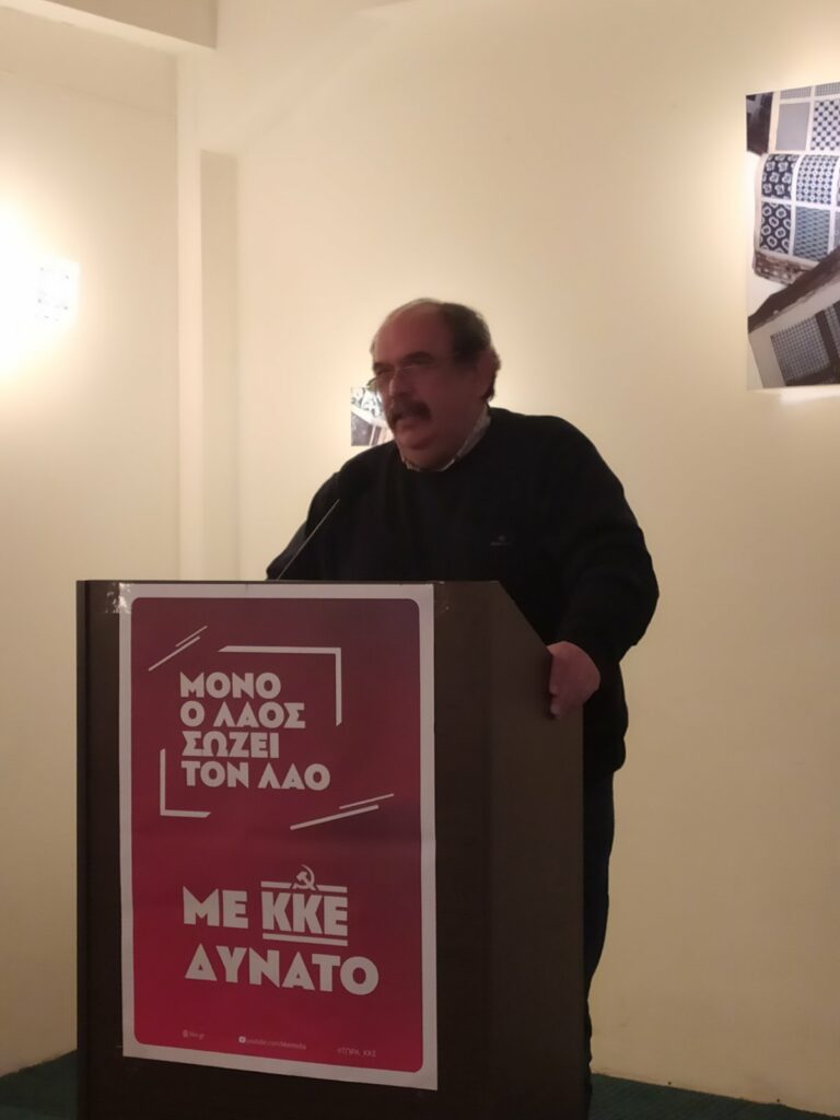Στη συνέχεια το λόγο πήρε ο Τριαντάφυλλος Φωτιάδης, αντιπλοίαρχος Πολεμικού Ναυτικού ε.α. πρόεδρος της Ανεξάρτητης Ένωσης Αποστράτων ΕΔ και υποψήφιος βουλευτής στον Έβρο με το ΚΚΕ.