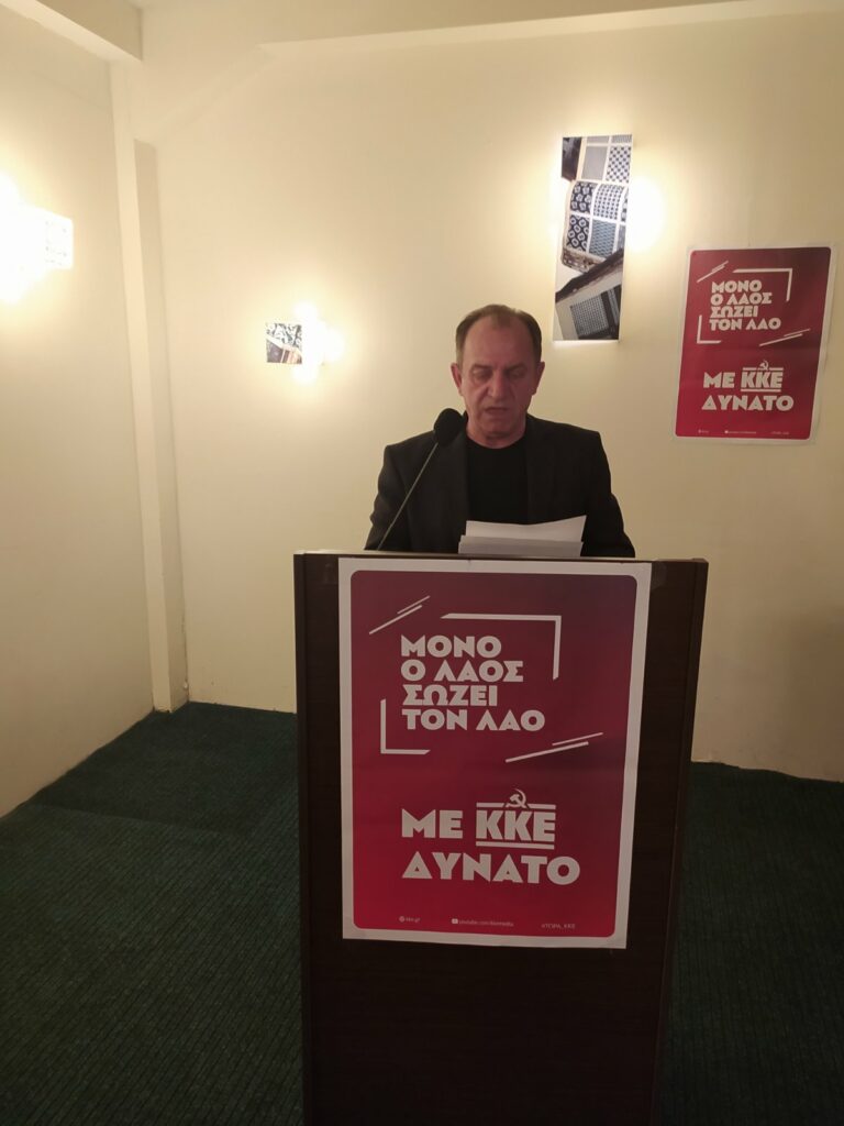 Αρχικά εκ μέρους της Τ.Ε. Έβρου του ΚΚΕ το λόγο πήρε ο Σιδέρης Μιχαηλίδης, οποίος αφού παρουσίασε το ψηφοδέλτιο του κόμματος στον Έβρο, ανακοίνωσε την συμμετοχή της Λαϊκής Συσπείρωσης Ορεστιάδας στις επερχόμενες δημοτικές εκλογές με επικεφαλής τον Κώστα Ζαλουφλή.